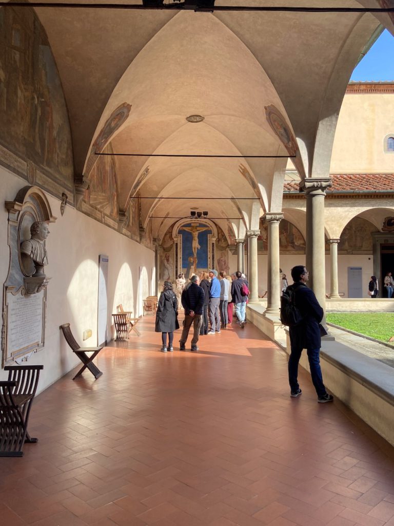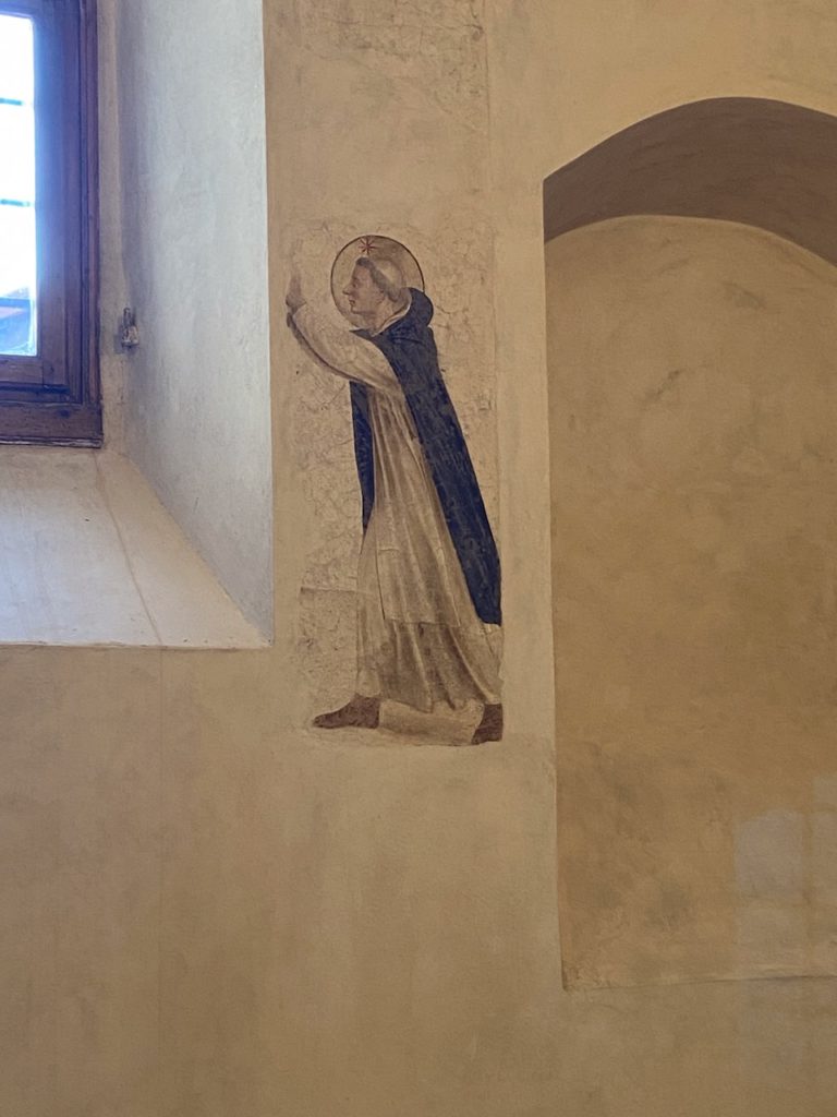 So gehen wir als Besucher im Konvent von Mönchszelle zu Mönchszelle und betrachten mit Staunen und Bewunderung die von Fra Angelico und seinen Mitarbeitern und Schülern gemalten biblischen Bilder der Evangelien, die vor der Umwandlung in ein Museum Mitte des 19. Jahrhunderts für die Öffentlichkeit nicht zugänglich waren. Jedes Fresko gemalt von einem Künstler, der mit christlicher Hingabe noch der religiösen Kunst des Mittelalters und der Gotik verbunden ist und doch bereits die ankommende Zeit der Renaissance mit ihrem neuen perspektivischen Blick sieht.
