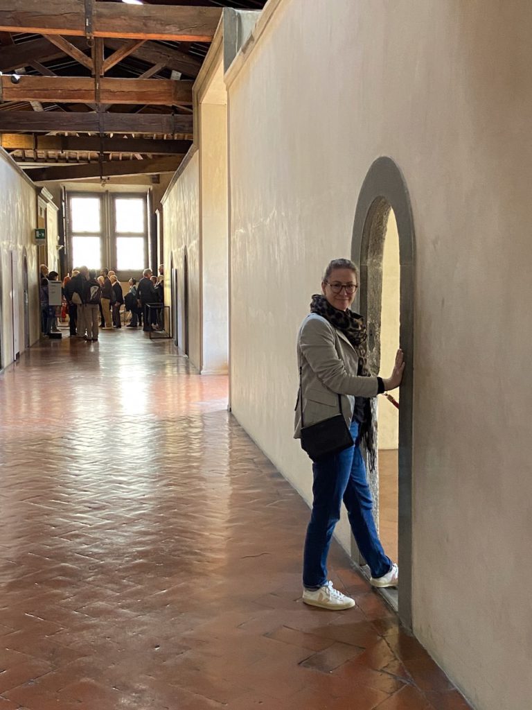 Tamara vor einer Mönchszelle im Dormitorium des Konvents